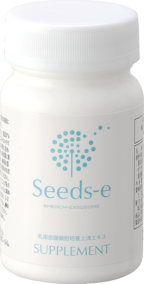 理念を実現するためには、科学的根拠に基づいた製品力も不可欠だ。当社では、乳歯由来の歯髄幹細胞培養上清液を配合したブランド「Seeds-e(シーズ・イー)」を取り扱っている。