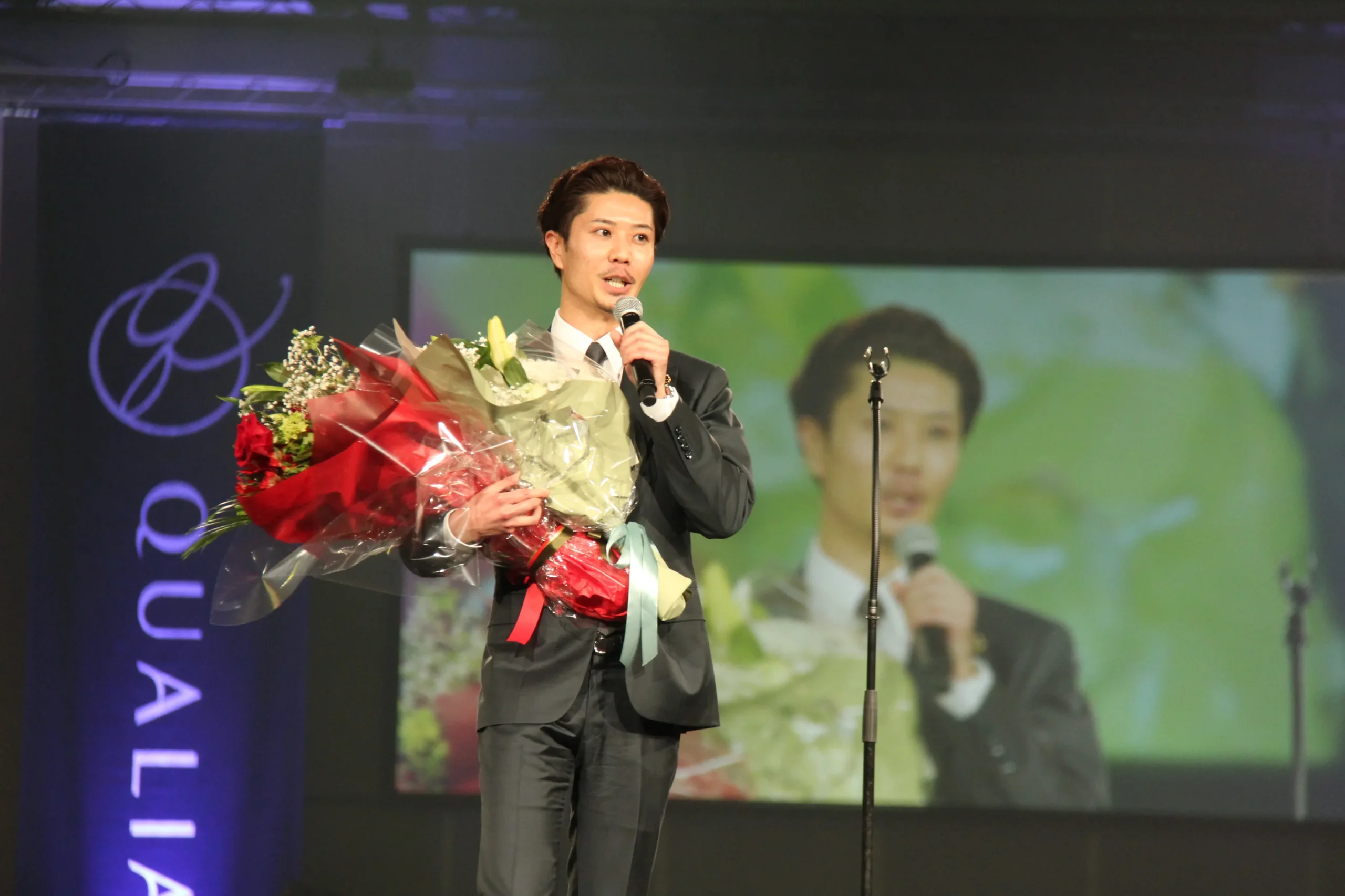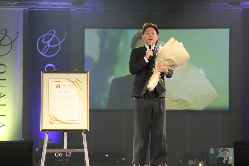表彰式では、最高タイトルのゴールデンエンプレスを、福谷竜典さんと金子真琴さんの2人が達成した。福谷さんは「創業メンバーの1人として、クオリアに骨を埋めるつもりで取り組んでいる」と、金子さんは「自分の人生をあきらめないでほしい。自分を信じられなくても、あなたのために時間を使ってくれる人の思いは信じてほしい」と、それぞれ会員に語りかけた。